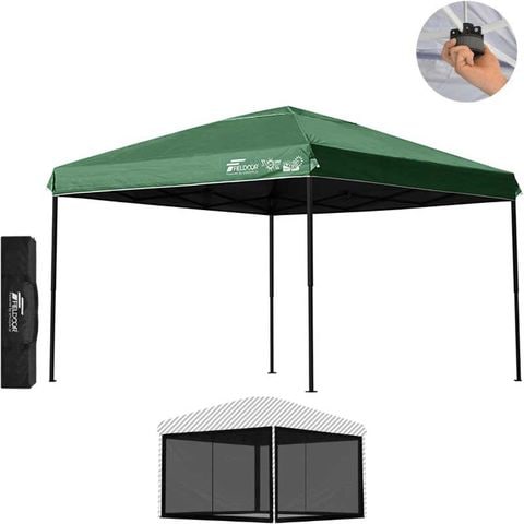 FIELDOOR ワンタッチタープテント 3m (遮光遮熱PU:グリーン/スチール/センターロック/Bバグガード付) 頑丈 テント タープ 300 3.0m ワンタッチテント ワンタッチタープ ワンタッチ 大型 簡単 UVカット 撥水 日よけ プール イベント アウトドア キャンプ BBQ 送料無料