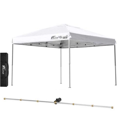 FIELDOOR ワンタッチタープテント 3m (標準:ホワイト/スチール/4点脚ロック/Cミストシャワー付) 頑丈 テント タープ 300 3.0m ワンタッチテント ワンタッチタープ ワンタッチ 大型 簡単 UVカット 撥水 日よけ プール イベント アウトドア キャンプ BBQ 送料無料