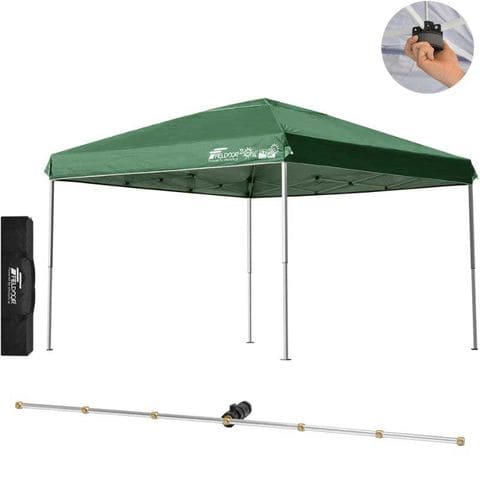 FIELDOOR ワンタッチタープテント 3m (標準:グリーン/スチール/センターロック/Cミストシャワー付) 頑丈 テント タープ 300 3.0m ワンタッチテント ワンタッチタープ ワンタッチ 大型 簡単 UVカット 撥水 日よけ プール イベント アウトドア キャンプ BBQ 送料無料