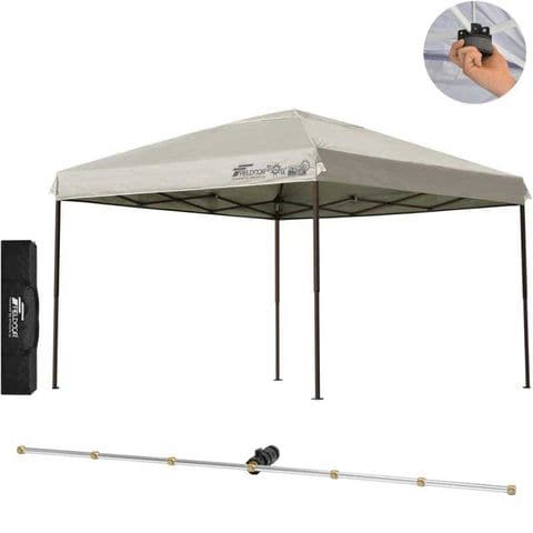 FIELDOOR ワンタッチタープテント 3m (標準:ライトベージュ/スチール/センターロック/Cミストシャワー付) 頑丈 テント タープ 300 3.0m ワンタッチテント ワンタッチタープ ワンタッチ 大型 簡単 UVカット 撥水 日よけ プール イベント アウトドア キャンプ 送料無料