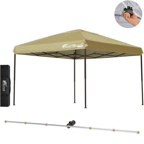 FIELDOOR ワンタッチタープテント 3m (標準:サンド/スチール/センターロック/Cミストシャワー付) 頑丈 テント タープ 300 3.0m ワンタッチテント ワンタッチタープ ワンタッチ 大型 簡単 UVカット 撥水 日よけ プール イベント アウトドア キャンプ BBQ 送料無料