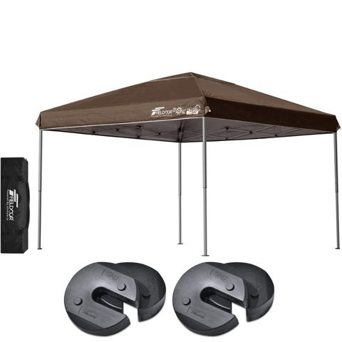 FIELDOOR ワンタッチタープテント 3m (標準:ダークブラウン/アルミ/4点脚ロック/Dウエイト4点付) 軽量 テント タープ ワンタッチ ワンタッチテント ワンタッチタープ UV加工 撥水 ベンチレーション 収納バッグ付 日よけ キャンプ バーベキュー 送料無料