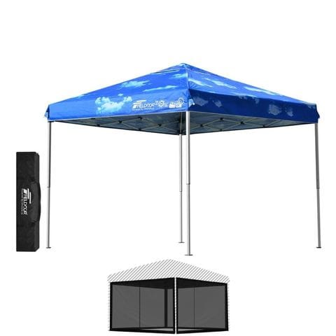 FIELDOOR ワンタッチタープテント 2.5m (標準:ブルースカイ/スチール/4点脚ロック/Bバグガード付) テント タープ ワンタッチ ワンタッチテント ワンタッチタープ UV加工 撥水 ベンチレーション 収納バッグ付 日よけ キャンプ バーベキュー 送料無料