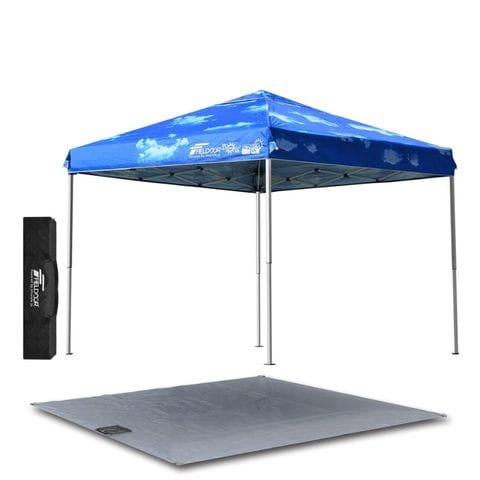 FIELDOOR ワンタッチタープテント 2.5m (標準:ブルースカイ/スチール/4点脚ロック/Cグランドシート付) テント タープ ワンタッチ ワンタッチテント ワンタッチタープ UV加工 撥水 ベンチレーション 収納バッグ付 日よけ キャンプ バーベキュー 送料無料