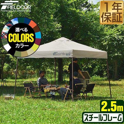 FIELDOOR ワンタッチタープテント 2.5m (遮光遮熱PU:グレー/スチール/センターロック/A強化サポート付) テント タープ ワンタッチ ワンタッチテント ワンタッチタープ UV加工 撥水 ベンチレーション 収納バッグ付 日よけ キャンプ バーベキュー 送料無料