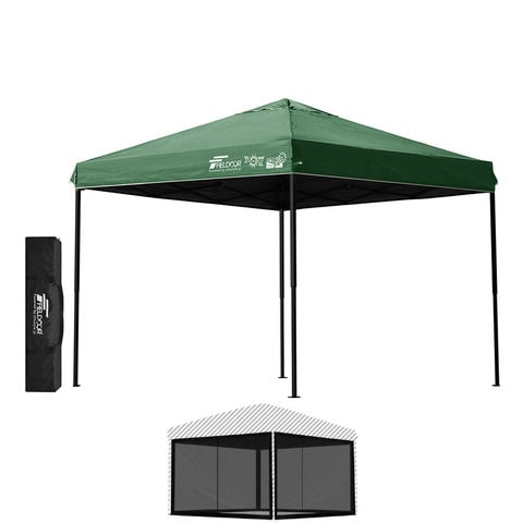 FIELDOOR ワンタッチタープテント 2.5m (遮光遮熱PU:グリーン/スチール/4点脚ロック/Bバグガード付) 頑丈 スチール タープ 250 ワンタッチテント ワンタッチタープ ワンタッチ 大型 簡単 UVカット 撥水 日よけ プール イベント アウトドア キャンプ BBQ 送料無料
