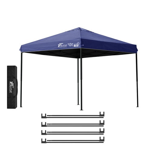 FIELDOOR ワンタッチタープテント 2.5m (遮光遮熱PU:ブルー/スチール/4点脚ロック/A強化サポート付) スチール タープ 250 ワンタッチテント ワンタッチタープ ワンタッチ 大型 簡単 UVカット 撥水 日よけ プール イベント アウトドア キャンプ BBQ 送料無料