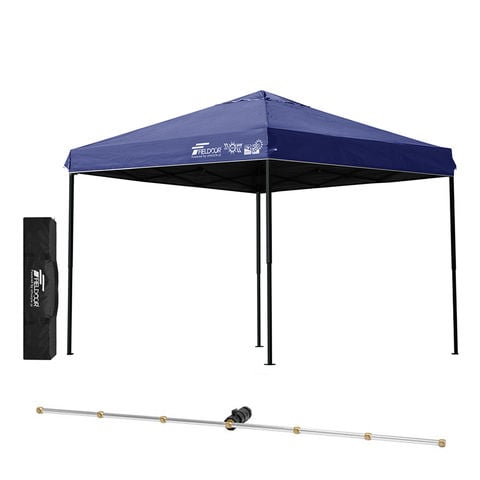 FIELDOOR ワンタッチタープテント 2.5m (遮光遮熱PU:ブルー/スチール/4点脚ロック/Cミストシャワー付) スチール タープ 250 ワンタッチテント ワンタッチタープ ワンタッチ 大型 簡単 UVカット 撥水 日よけ プール イベント アウトドア キャンプ BBQ 送料無料