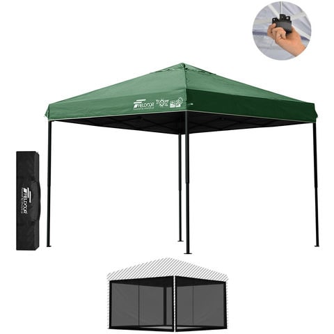 FIELDOOR ワンタッチタープテント 2.5m (遮光遮熱PU:グリーン/スチール/センターロック/Bバグガード付) スチール タープ 250 ワンタッチテント ワンタッチタープ ワンタッチ 大型 簡単 UVカット 撥水 日よけ プール イベント アウトドア キャンプ BBQ 送料無料