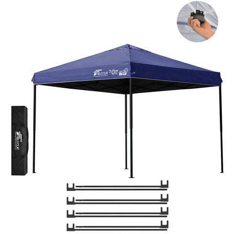 FIELDOOR ワンタッチタープテント 2.5m (遮光遮熱PU:ブルー/スチール/センターロック/A強化サポート付) スチール タープ 250 ワンタッチテント ワンタッチタープ ワンタッチ 大型 簡単 UVカット 撥水 日よけ プール イベント アウトドア キャンプ BBQ 送料無料