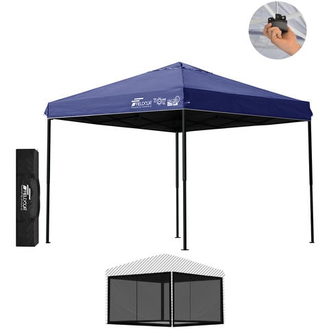 FIELDOOR ワンタッチタープテント 2.5m (遮光遮熱PU:ブルー/スチール/センターロック/Bバグガード付) スチール タープ 250 ワンタッチテント ワンタッチタープ ワンタッチ 大型 簡単 UVカット 撥水 日よけ プール イベント アウトドア キャンプ BBQ 送料無料