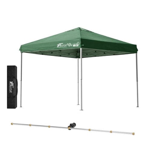 FIELDOOR ワンタッチタープテント 2.5m (標準:グリーン/スチール/4点脚ロック/Cミストシャワー付) 頑丈 スチール テント タープ 250 ワンタッチテント ワンタッチタープ ワンタッチ 大型 簡単 UVカット 撥水 日よけ プール イベント アウトドア キャンプ BBQ 送料無料