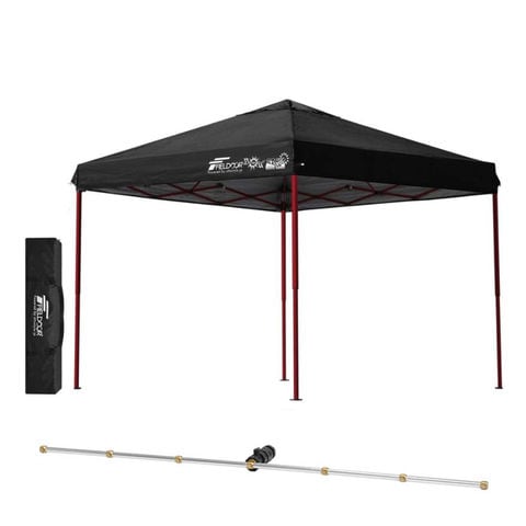 FIELDOOR ワンタッチタープテント 2.5m (標準:ブラック/スチール/4点脚ロック/Cミストシャワー付) 頑丈 スチール テント タープ 250 ワンタッチテント ワンタッチタープ ワンタッチ 大型 簡単 UVカット 撥水 日よけ プール イベント アウトドア キャンプ BBQ 送料無料