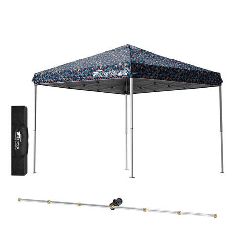FIELDOOR ワンタッチタープテント 2.5m (標準:トライアングルネイビー/スチール/4点脚ロック/Cミストシャワー付) スチール タープ 250 ワンタッチテント ワンタッチタープ ワンタッチ 大型 簡単 UVカット 撥水 日よけ プール イベント アウトドア キャンプ BBQ 送料無料