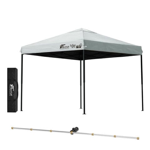 FIELDOOR ワンタッチタープテント 2.5m (遮光遮熱PU:グレー/スチール/4点脚ロック/Cミストシャワー付) スチール タープ 250 ワンタッチテント ワンタッチタープ ワンタッチ 大型 簡単 UVカット 撥水 日よけ プール イベント アウトドア キャンプ BBQ 送料無料