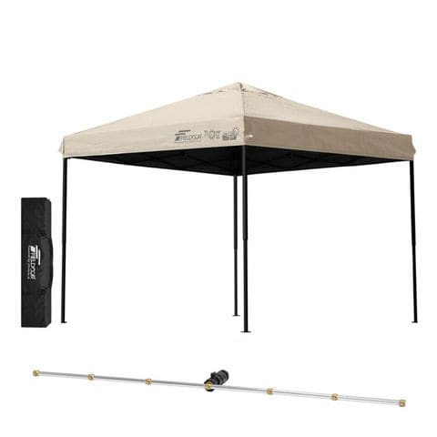 FIELDOOR ワンタッチタープテント 2.5m (遮光遮熱PU:ライトベージュ/スチール/4点脚ロック/Cミストシャワー付) スチール タープ 250 ワンタッチテント ワンタッチタープ ワンタッチ 大型 簡単 UVカット 撥水 日よけ プール イベント アウトドア キャンプ BBQ 送料無料