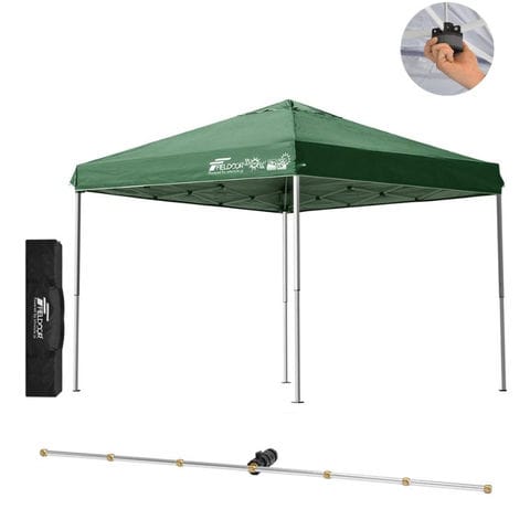 FIELDOOR ワンタッチタープテント 2.5m (標準:グリーン/スチール/センターロック/Cミストシャワー付) 頑丈 スチール テント タープ 250 ワンタッチテント ワンタッチタープ ワンタッチ 大型 簡単 UVカット 撥水 日よけ プール イベント アウトドア キャンプ BBQ 送料無料