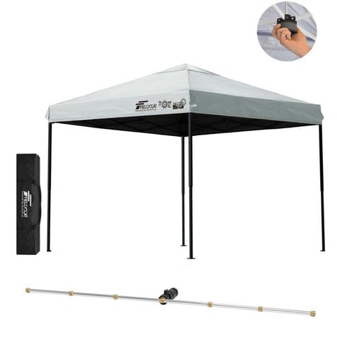 FIELDOOR ワンタッチタープテント 2.5m (遮光遮熱PU:グレー/スチール/センターロック/Cミストシャワー付) スチール タープ 250 ワンタッチテント ワンタッチタープ ワンタッチ 大型 簡単 UVカット 撥水 日よけ プール イベント アウトドア キャンプ BBQ 送料無料