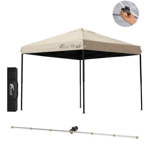 FIELDOOR ワンタッチタープテント 2.5m (遮光遮熱PU:ライトベージュ/スチール/センターロック/Cミストシャワー付) スチール タープ 250 ワンタッチテント ワンタッチタープ ワンタッチ 大型 簡単 UVカット 撥水 日よけ プール イベント アウトドア キャンプ BBQ 送料無料