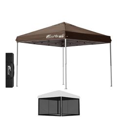 FIELDOOR ワンタッチタープテント 2.5m (標準:ダークブラウン/スチール/4点脚ロック/タープ本体のみ) テント タープ ワンタッチ ワンタッチテント ワンタッチタープ UV加工 撥水 ベンチレーション 収納バッグ付 日よけ キャンプ バーベキュー 送料無料