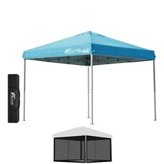 FIELDOOR ワンタッチタープテント 2.5m (標準:ターコイズ/スチール/4点脚ロック/タープ本体のみ) テント タープ ワンタッチ ワンタッチテント ワンタッチタープ UV加工 撥水 ベンチレーション 収納バッグ付 日よけ キャンプ バーベキュー 送料無料