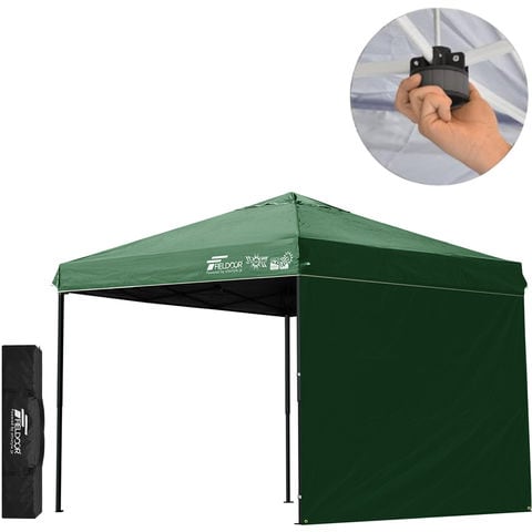 FIELDOOR ワンタッチタープテント 2.5m (遮光遮熱PU:グリーン/スチール/センターロック/タープ本体のみ/サイドシート1枚付) 横幕セット 頑丈 スチール タープ 250 ワンタッチテント 大型 簡単 UVカット 撥水 日よけ プール イベント アウトドア キャンプ BBQ 送料無料