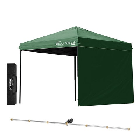 FIELDOOR ワンタッチタープテント 2.5m (遮光遮熱PU:グリーン/スチール/4点脚ロック/Cミストシャワー付/サイドシート1枚付) 横幕セット 頑丈 スチール タープ 250 ワンタッチテント 大型 簡単 UVカット 撥水 日よけ プール イベント アウトドア キャンプ BBQ 送料無料