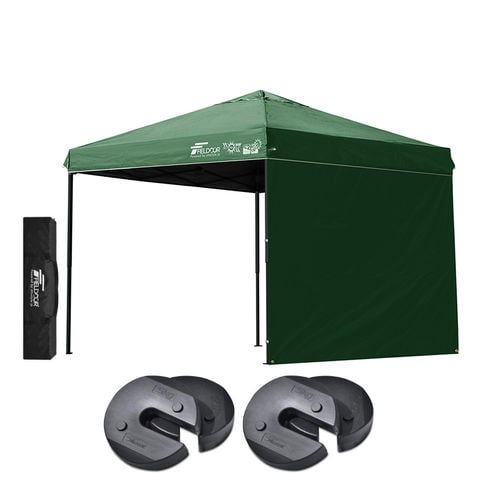 FIELDOOR ワンタッチタープテント 2.5m (遮光遮熱PU:グリーン/スチール/4点脚ロック/Dウエイト4点付/サイドシート1枚付) 横幕セット 頑丈 スチール タープ 250 ワンタッチテント 大型 簡単 UVカット 撥水 日よけ プール イベント アウトドア キャンプ BBQ 送料無料