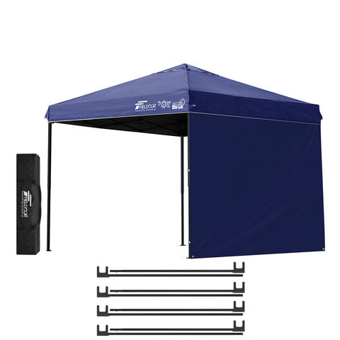 FIELDOOR ワンタッチタープテント 2.5m (遮光遮熱PU:ブルー/スチール/4点脚ロック/A強化サポート付/サイドシート1枚付) 横幕セット 頑丈 スチール タープ 250 ワンタッチテント 大型 簡単 UVカット 撥水 日よけ プール イベント アウトドア キャンプ BBQ 送料無料