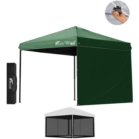FIELDOOR ワンタッチタープテント 2.5m (遮光遮熱PU:グリーン/スチール/センターロック/Bバグガード付/サイドシート1枚付) 横幕セット 頑丈 スチール タープ 250 ワンタッチテント 大型 簡単 UVカット 撥水 日よけ プール イベント アウトドア キャンプ BBQ 送料無料