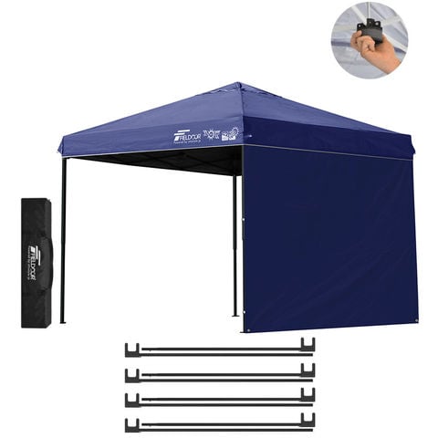FIELDOOR ワンタッチタープテント 2.5m (遮光遮熱PU:ブルー/スチール/センターロック/A強化サポート付/サイドシート1枚付) 横幕セット 頑丈 スチール タープ 250 ワンタッチテント 大型 簡単 UVカット 撥水 日よけ プール イベント アウトドア キャンプ BBQ 送料無料