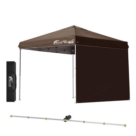 FIELDOOR ワンタッチタープテント 2.5m (標準:ダークブラウン/スチール/4点脚ロック/Cミストシャワー付/サイドシート1枚付) 横幕セット 頑丈 スチール タープ 250 ワンタッチテント 大型 簡単 UVカット 撥水 日よけ プール イベント アウトドア キャンプ BBQ 送料無料
