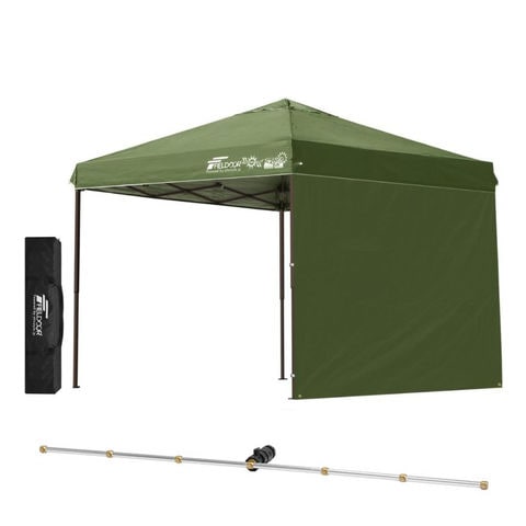 FIELDOOR ワンタッチタープテント 2.5m (標準:カーキ/スチール/4点脚ロック/Cミストシャワー付/サイドシート1枚付) 横幕セット 頑丈 スチール テント タープ 250 ワンタッチテント 大型 簡単 UVカット 撥水 日よけ プール イベント アウトドア キャンプ BBQ 送料無料