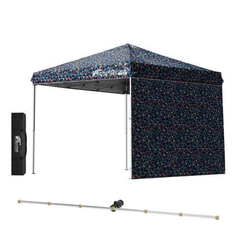 FIELDOOR ワンタッチタープテント 2.5m (標準:トライアングルネイビー/スチール/4点脚ロック/Cミストシャワー付/サイドシート1枚付) 横幕セット スチール タープ 250 ワンタッチテント 大型 簡単 UVカット 撥水 日よけ プール イベント アウトドア キャンプ BBQ 送料無料
