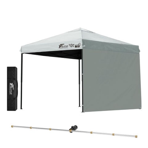 FIELDOOR ワンタッチタープテント 2.5m (遮光遮熱PU:グレー/スチール/4点脚ロック/Cミストシャワー付/サイドシート1枚付) 横幕セット 頑丈 スチール タープ 250 ワンタッチテント 大型 簡単 UVカット 撥水 日よけ プール イベント アウトドア キャンプ BBQ 送料無料