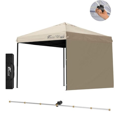 FIELDOOR ワンタッチタープテント 2.5m (遮光遮熱PU:ライトベージュ/スチール/センターロック/Cミストシャワー付/サイドシート1枚付) 横幕セット スチール タープ 250 ワンタッチテント 大型 簡単 UVカット 撥水 日よけ プール イベント アウトドア キャンプ 送料無料