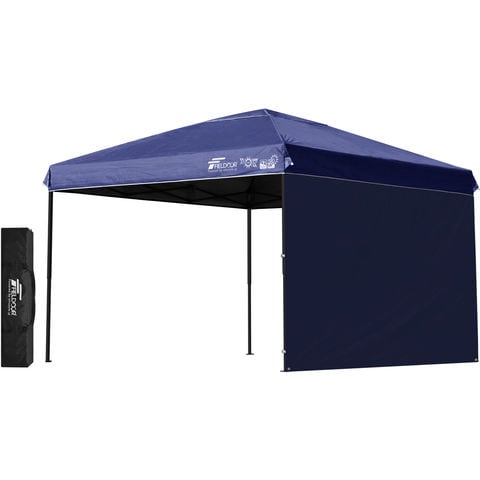 FIELDOOR ワンタッチタープテント 3m (遮光遮熱PU:ブルー/スチール/4点脚ロック/タープ本体のみ/サイドシート1枚付) 横幕セット 頑丈 テント タープ 300 3.0m ワンタッチテント ワンタッチタープ 大型 簡単 UVカット 撥水 日よけ アウトドア キャンプ [送料無料]