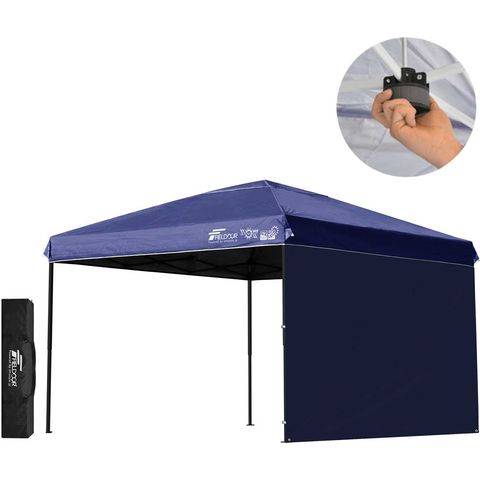 FIELDOOR ワンタッチタープテント 3m (遮光遮熱PU:ブルー/スチール/センターロック/タープ本体のみ/サイドシート1枚付) 横幕セット 頑丈 テント タープ 300 3.0m ワンタッチテント ワンタッチタープ 大型 簡単 UVカット 撥水 日よけ アウトドア キャンプ [送料無料]