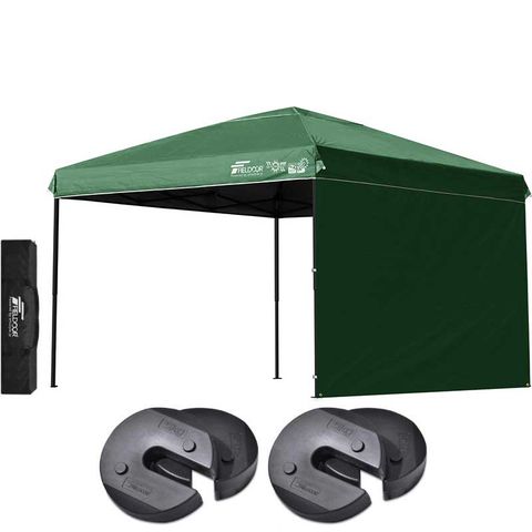 FIELDOOR ワンタッチタープテント 3m (遮光遮熱PU:グリーン/スチール/4点脚ロック/Dウエイト4点付/サイドシート1枚付) 横幕セット 頑丈 テント タープ 300 3.0m ワンタッチテント ワンタッチタープ 大型 簡単 UVカット 撥水 日よけ アウトドア キャンプ [送料無料]