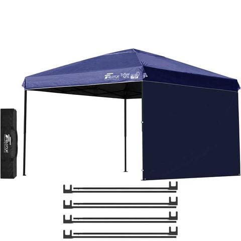 FIELDOOR ワンタッチタープテント 3m (遮光遮熱PU:ブルー/スチール/4点脚ロック/A強化サポート付/サイドシート1枚付) 横幕セット 頑丈 テント タープ 300 3.0m ワンタッチテント ワンタッチタープ 大型 簡単 UVカット 撥水 日よけ アウトドア キャンプ [送料無料]