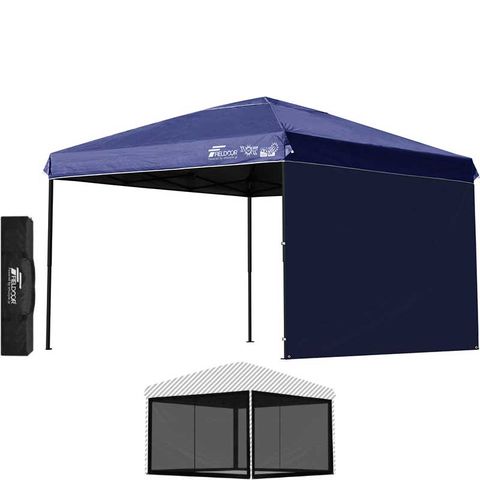 FIELDOOR ワンタッチタープテント 3m (遮光遮熱PU:ブルー/スチール/4点脚ロック/Bバグガード付/サイドシート1枚付) 横幕セット 頑丈 テント タープ 300 3.0m ワンタッチテント ワンタッチタープ 大型 UVカット 撥水 日よけ イベント アウトドア キャンプ [送料無料]