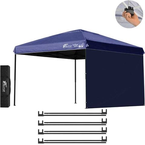 FIELDOOR ワンタッチタープテント 3m (遮光遮熱PU:ブルー/スチール/センターロック/A強化サポート付/サイドシート1枚付) 横幕セット 頑丈 テント タープ 300 3.0m ワンタッチテント ワンタッチタープ 大型 簡単 UVカット 撥水 日よけ アウトドア キャンプ [送料無料]