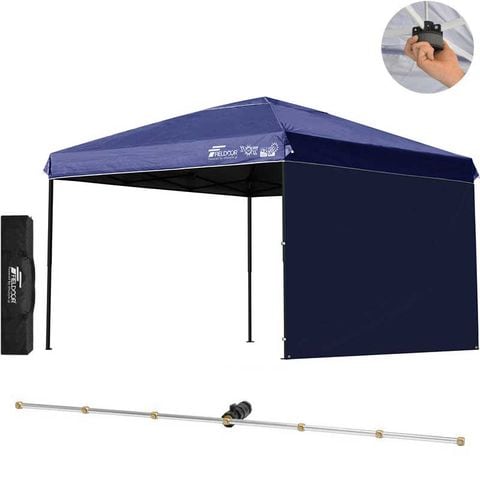 FIELDOOR ワンタッチタープテント 3m (遮光遮熱PU:ブルー/スチール/センターロック/Cミストシャワー付/サイドシート1枚付) 横幕セット 頑丈 テント タープ 300 3.0m ワンタッチテント ワンタッチタープ 大型 簡単 UVカット 撥水 日よけ アウトドア キャンプ [送料無料]