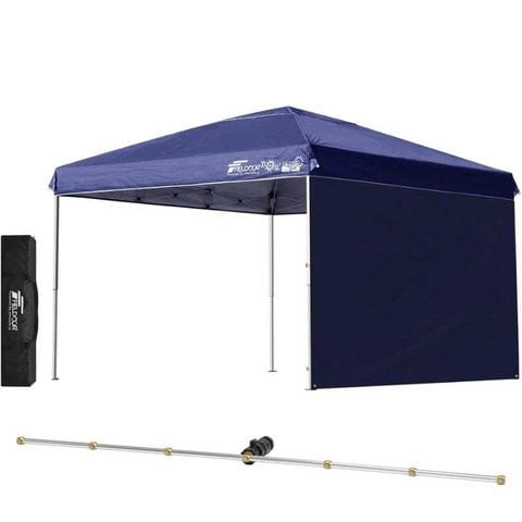 FIELDOOR ワンタッチタープテント 3m (標準:ブルー/スチール/4点脚ロック/Cミストシャワー付/サイドシート1枚付) 横幕セット 頑丈 テント タープ 300 3.0m ワンタッチテント ワンタッチタープ 大型 簡単 UVカット 撥水 日よけ イベント アウトドア キャンプ [送料無料]