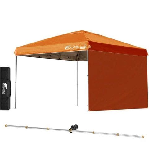FIELDOOR ワンタッチタープテント 3m (標準:オレンジ/スチール/4点脚ロック/Cミストシャワー付/サイドシート1枚付) 横幕セット 頑丈 テント タープ 300 3.0m ワンタッチテント ワンタッチタープ 大型 UVカット 撥水 日よけ イベント アウトドア キャンプ [送料無料]