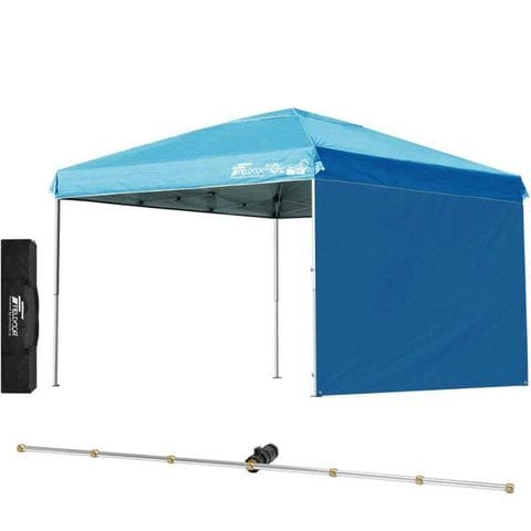 FIELDOOR ワンタッチタープテント 3m (標準:ターコイズ/スチール/4点脚ロック/Cミストシャワー付/サイドシート1枚付) 横幕セット 頑丈 テント タープ 300 3.0m ワンタッチテント ワンタッチタープ 大型 UVカット 撥水 日よけ イベント アウトドア キャンプ [送料無料]
