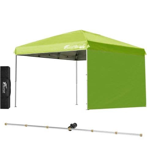 FIELDOOR ワンタッチタープテント 3m (標準:ライム/スチール/4点脚ロック/Cミストシャワー付/サイドシート1枚付) 横幕セット 頑丈 テント タープ 300 3.0m ワンタッチテント ワンタッチタープ 大型 簡単 UVカット 撥水 日よけ イベント アウトドア キャンプ [送料無料]