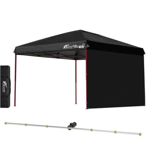 FIELDOOR ワンタッチタープテント 3m (標準:ブラック/スチール/4点脚ロック/Cミストシャワー付/サイドシート1枚付) 横幕セット 頑丈 テント タープ 300 3.0m ワンタッチテント ワンタッチタープ 大型 UVカット 撥水 日よけ イベント アウトドア キャンプ [送料無料]