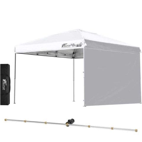FIELDOOR ワンタッチタープテント 3m (標準:ホワイト/スチール/4点脚ロック/Cミストシャワー付/サイドシート1枚付) 横幕セット 頑丈 テント タープ 300 3.0m ワンタッチテント ワンタッチタープ 大型 UVカット 撥水 日よけ イベント アウトドア キャンプ [送料無料]