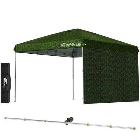 FIELDOOR ワンタッチタープテント 3m (標準:カモフラージュグリーン/スチール/4点脚ロック/Cミストシャワー付/サイドシート1枚付) 横幕セット 頑丈 テント タープ 300 3.0m ワンタッチテント ワンタッチタープ 大型 UVカット 撥水 日よけ アウトドア キャンプ [送料無料]